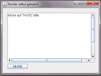 Interfaccia utente con campo di testo e tasto d'azione (commenti in tedesco) JFrame, JTextArea con JScrollPane, JButton ---
